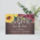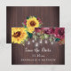 Estes cartões salve a data apresentam um design de aquarela com girassóis e flores burgundy sobre fundo de grãos de madeira com luzes de jarro de mason. Personalize estas cartas com o seu próprio texto. Estes cartões fazem parte de uma coleção que inclui outros artigos de casamento. Visualize a página de coleta ou visite nossa loja para ver o intervalo de cheios.