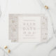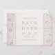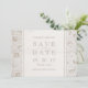 Elegante branco neutro sobre renda floral branca e cartões salve a data de grãos de madeira rústicos, excelente para casamento rústico, casamento country o ano todo, particularmente no inverno. Veja todas as peças correspondentes na coleção abaixo.
