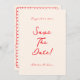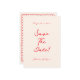 Este casamento moderno e retrô minimalista Salve a Modelo de Data é perfeito para você. Se você está procurando por um casamento bonito, elegante e fácil de personalizar Salve a data Modelo. Um casamento muito elegante, simples e chic vermelho, branco, escrito, manuscrito, salve o convite de data. O que apresenta um mínimo de vermelho, salve a data em negrito tipografia escrita à mão sobre fundo cremoso e louça floral desenhada à mão. Pegue este casamento de na moda, salve a data e faça seus convites realmente comprometidos.