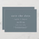 Este casamento rústico e empoeirado de boho azul, salvo o cartão é perfeito para um casamento moderno. A design minimalista apresenta uma tipografia simples, mas na moda, sobre cinzas de ardósia com ar de sofisticação moderna.