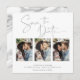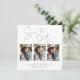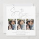 Manuscrito Salve o Cartão com fotos Múltiplo da Folha de Prata de Data em uma fonte elegante e que evoca um toque romântico manuscrito. No verso há veias do estilo folha prateada que correm através do mármore clássico. Projetado para usar três de suas fotos favoritas para personalização adicional. Adicione facilmente seus nomes e datas para um design verdadeiramente personalizado.