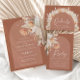 A boêmia de terracotta pampas na moda trendy moderna carta de convite para fotos de casamento.