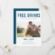 Casamento engraçado salve os cartões de data para o casal noivo em um design azul moderno que dizia "Bebidas grátis (e vamos nos casar)". Personalize a parte frontal da placa com sua foto horizontal (recorte para retângulo antes de carregar para obter melhores resultados). Adicione seus nomes, data do casamento e local. Personalize a parte de trás do cartão com os detalhes do seu casamento. Contacte-me através do botão abaixo se necessitar de assistência com o modelo, com a adição da sua fotografia ou se tiver pedidos de personalização.