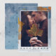 Este é um modelo de foto exclusivo e moderno para design de save the date, com espaço para a foto do casal favorito sob um modelo "save the date" exclusivo com detalhes de aquarela em azul e dourado. Uma ótima maneira de informar sua família e amigos sobre a celebração do seu casamento. Personalize com seus nomes e detalhes do casamento.