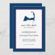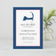 Guarde o Anúncio de Casamento de Data para o seu casamento em Cape Cod. Mapa de Cape Cod com coração sobre Osterville, Massachusetts. Simples mas elegante. As cores estão no Marinho azul, branco e um coração rosa quente colocado sobre Osterville. Se o esquema de cores não for o que você queria, envie um e-mail para paula@labellarue.com ANTES DE FAZER UM pedido para que um novo modelo possa ser criado para você. Feliz Planejamento de Casamento! Certifique-se de escolher seu estoque de papelão favorito para que ele seja impresso.
