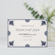 Este Casamento Simples de Festa Otomi Azul Mexicano Salve o design de Data apresenta uma borda simples e elegante, com floral azul escuro e elementos de pássaros delicadamente colocados em cada esquina. A área central é vazio à esquerda, enquadrada por uma fina linha azul, que fornece um pano de fundo limpo e minimalista para o texto. A combinação de pássaros e flores, com o uso restrito da cor, dá à design um olhar sofisticado, porém tradicional, inspirado nos mísseis folclóricos mexicanos.