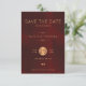 O casamento simples e moderno de tipografia simples de cobre de ouro clássico salve o cartão de data em uma antiga vintage de veludo embrulhada de vinho tinto escuro. ++++++++++++++++++ Fácil de personalizar com seus detalhes! +++++++++++++++++ Ideal para na moda— blacktie formal em todas as estações recepções de casamento. Recomendado principalmente para casamentos temáticos no Natal de inverno.