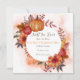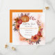 Um evento de casamento/ noivado temático de outono para todos aproveitarem. Estes cartões quadrados de 'save the date' são adornados com arte de outono temática floral, frutífera e de abóbora e impressionarão todos a comparecer. Ótimo para casamentos, noivados e mais. Personalize com detalhes para o evento de sua escolha. Imagem por orchidart no Freepik.