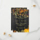 Na moda de casamento outono elegante russo para guardar a data modelo no fundo de madeira castanho-escura com buquês botânicos laranja arruinados com abóbora, folhagem e folhas secas. ++++++++++ Fácil de personalizar com seus detalhes! O convite é adequado para o final elegante do Verão ou outono, casamentos de jardins florais no interior do campo rústico no exterior.