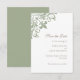 Chic e elegante república francesa verde fleur de lis, convite de casamento. Padrão detalhado do canto do pulgão em verde-sábio. Personalize com seus nomes e suas informações de casamento em letras escura. Projetado para combinar com a nossa Coleção de Casamentos de Fleur de Lis Verde da Regência Francesa.