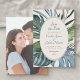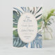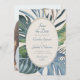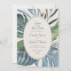 Convide seus convidados para o paraíso por um dia com esta elegante design de palmeiras tropicais. Apresentando um spray de folhas tropicais sorteadas em azuis serenos e verdes e um padrão de ratos estilizados nas costas, essa design incorpora um dia de brisa debaixo das palmeiras. Perfeito para seu caso casual de praia ou celebração de destino nos trópicos. Compre a coleção hoje para o papel de carta correspondente, e vá para o dia perfeito!