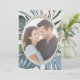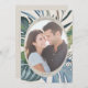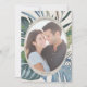 Convide seus convidados para o paraíso por um dia com esta elegante design de palmeiras tropicais. Apresentando um spray de folhas tropicais sorteadas em azuis serenos e verdes e um padrão de ratos estilizados nas costas, essa design incorpora um dia de brisa debaixo das palmeiras. Perfeito para seu caso casual de praia ou celebração de destino nos trópicos. Compre a coleção hoje para o papel de carta correspondente, e vá para o dia perfeito!
