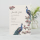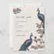 Este Elegante Casamento Peacock Foral de Ivory Salve a Data apresenta pavões azuis e lacrimosos feitos à mão, tocados em ramos de Magnolia, em cheio, a tinta preta, num elegante e clássico fundo de marfim. O verso apresenta um belo padrão com os mesmos elementos de arte. Personalize com os detalhes do evento clicando em "Personalizar este modelo" na página do produto. Todo texto é editável.