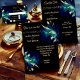 Este cartão de casamento apresenta um design etéreo com uma mistura de matizes e tons azuis escuros formando um fundo névoo. Ouro e penas prateadas flutuam graciosamente através da imagem, criando um sentido de elegância e leveza. O estilo artístico combina elementos de abstrato e fantasia, com foco em formas suaves, fluentes e sotaques metálicos luxuosos. O efeito geral é sofisticado e sonhador, perfeito para transmitir a beleza e o encanto de uma celebração de casamento. Personalize o texto relativo aos nomes e detalhes do casamento. Você pode baixar a placa para seu dispositivo móvel ou computador. Eu desenhei o cartão com a ajuda de um ar generativo.
