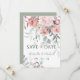 Belos flores cor-de-rosa elegantes e modernos, delicados e cremosos, com folhagem suave de aquarela. Peônias rosa. Parte de trás do cartão verde pastel suave. Este “Save the Date” é elegante & romântico e um cartão para todas as estações. Além da sofisticação. Uma tipografia simples e chic também é adicionada para finalizar este lembrete de casamento em uma apresentação além de bela para todos os seus convidados. Absolutamente deslumbrante.