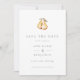 Casamento elegante e minimalista salva a data com peras aquáticas
