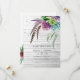 Convite de foto de casamento com plantas suculentas na moda com penas boêmias e caligrafia elegante personalizável para os detalhes do seu evento. Ideal para qualquer tema ou casamento de jardim.