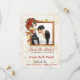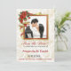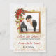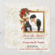 Bells Elegantes com fita fluente e flores vermelhas Poinsettia com borda de malha dourada para armar uma foto na noiva e no noivo. Este casamento no inverno Salvar o cartão Data é totalmente personalizável em todo o texto e, claro, na foto. Ouro sutil e fundo branco em frente e atrás do cartão. Uma bela maneira para a noiva e o noivo anunciarem seus núpcias e garantirem que amigos e familiares reservem essa data especial.