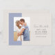 Casamento guarde as datas em um design de papel azul e bege falso, perfeito para uma praia ou casamento costeiro. Personalize com sua foto e detalhes do casamento, envie emails para a família e amigos pedindo que reservem sua data de casamento.