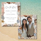Apresentando um fundo branco limpo e uma tipografia moderna, isto salve o design do cartão de data é enquadrado por uma borda aquosa macia de conchas, estrelas e tesouros costeiros em tons suaves de coral, aqua, cinza e areia. É a maneira perfeita de dar o tom para um anúncio de retirada, inspirado no mar. Sua foto favorita adornou as costas. Criado pela imprensa simplesmente de farmácia.