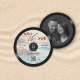 Ponha o tom para o seu casamento com este Music Wedding Salve a Data projetada para parecer um recorde de vinilo vintage, com um fundo de aquarela tropical romântico. Perfeito para um casamento de praia para músicos, amantes de música e casamentos com inspiração retrógrada, este convite redondo único apresenta detalhes clássicos no estilo de disco, notas musicais e um sotaque de guitarra na moda. Quer você esteja planejando um casamento rock & roll, uma comemoração temática de jazz, ou um evento no estilo de festival, este design capta a magia da música e do amor. Personalize facilmente com seus detalhes de casamento e se prepare para dançar seu caminho para "Eu faço."