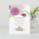 Convite de casamento com ilustrações botânicas em aquarela com sotaques ultravioleta, ameixa e verde-sage em alta. As flores apresentadas são ranúnculos, tulipas, violetas e crocos com forte influência impressionista chinesa. Ideal para qualquer tema ou casamento no jardim.