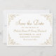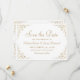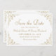 Este elegante casamento formal inspirado na vintage salve o cartão de data com o texto em um script de cor dourada e fontes serif, enquadrado por um delicado motif vintage de dourado.