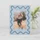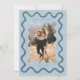 Impressionante e peculiar, salve o cartão de data com um quadro ondulado à mão desenhado ao redor da sua foto. A cor está em azul.