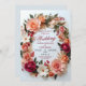 Este cartão de casamento apresenta uma bela coroa floral feita em forma oval. A design inclui uma mistura harmoniosa de pêssego mole, escamudo e rosas magenta profundos, complementada por delicadas margaridas brancas e várias folhagem verde. Pequenos acentos de bagas vermelhas acrescentam um toque de vibração, enquanto o delicado gradiente nas pétalas dá às flores uma aparência realista e elegante. O acordo é equilibrado e gracioso. A estética geral é romântica e sofisticada. Personalize o texto relativo aos nomes e detalhes do casamento. Você pode baixar a placa para seu dispositivo móvel ou computador. A design foi feita com a ajuda da tecnologia ai