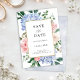 Moderno salve o cartão de data com hidrangas azuis claras/poeirentas de cor azul-d'água com cor pastel rosa, pincel, rosas brancas, peonias, folhas de eucalipto de sábado, galhos e folhagem. Tons românticos, suaves e sonhentos, primavera, designs florais de cor d'água de verão para combinar com o seu casamento temático. Por favor, encontre mais designs e variações na minha loja de "blisswedingpaperie". E fique à vontade para me contactar para mais personalizações ou itens correspondentes.