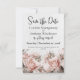 Este design personalizado maravilhoso apresenta rosas de rosas claro suaves em um fundo branco herdado. Elegante guarde o convite para o anúncio do casamento. Todos os textos podem ser alterados.