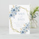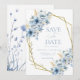 Anuncie seu dia especial em estilo com este Elegante Blue Floral Geométrico Frame Bloom Casamento Salve a Data! Com uma sofisticada mistura de delicados florais azuis e uma estrutura geométrica moderna, esse design equilibra perfeitamente o romance do eterno com a elegância contemporânea.