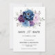Azul empoeirado Púrpura Lilac lavanda floral do tema floral salve o cartão de data com buquê elegante de azul empoeirado, Marinho, roxo, cor lilás flores rosa e folhas verdes de eucalipto sábio. Entre em contato comigo para obter ajuda sobre a personalização ou se você precisar de outro produto com este design.