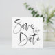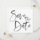 Caligrafia de Pincel Manuscrita Moderna Script de Casamento Preto e Branco Salve o Convite de Data. Um moderno e contemporâneo Salve o modelo de Datas com Escrita em Pincel da Caligrafia negra em fundo branco e nomes e data de casamento no verso. Personalize-o com as suas próprias informações de casamento e altere a cor do fundo, se preferir. Um anúncio de casamento contemporâneo para casais modernos. Este Design Salvar a Data também está disponível com texto branco sobre fundo preto no meu compro.