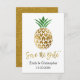 Casamento com Faux Gold Foil Script Casado Salve a Data do Convite Tropical Havaiano de Abacaxi.O Convite para Salvar a Data Tropical Havaiana de Abacaxi pode ser alterado para incluir seu nome e data do casamento. Entre em contato com o designer para encontrar itens personalizados correspondentes.