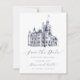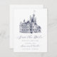 Imprima os seus convidados com este elegante casamento formal, salvem a data de JessicaAmber. Este cartão clássico apresenta uma ilustração detalhada de um castelo, que você pode substituir por uma imagem do seu destino de casamento (predileto em fundo branco ou transparente). A inscrição azul escura legante mostra os nomes da noiva e do noivo e os detalhes do casamento, incluindo a localização e a data. Procure na minha coleção o conjunto de convites correspondente. ⚠ Se você quiser editar a caligrafia e usar caracteres especiais, copie e cole-os desta página: bit.ly/Emeline-Script ⚠ ・ ・ Para mais suites de casamento, visite minha loja Zazzle.com/EventsByJessicaAmber ・ ・ ・ Para pedidos personalizados, envie-me uma mensagem no Zazzle