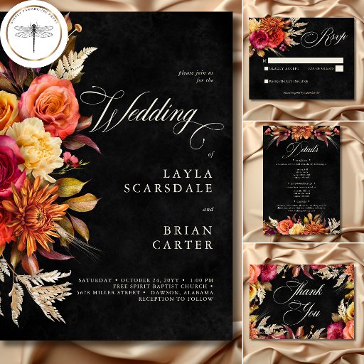 Elegant Black Vibrant Boho Floral Script WeddingCriado por Kathe Santillo