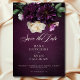 Entra num reino de elegância refinada com o nosso casamento floral escuro e sangrento, salva o cartão com fotos de data. Projetado para cativar os sentidos, este convite apresenta um fundo arrojado impressionante, adornado com uma explosão de florais em tons profundos, lavandas, lilás, cremosos, complementados por uma luxuosa folhagem verde-escura. O texto elegante e cremoso adiciona delicadamente um toque de romance ao fascínio geral. Abrace a opulência dos tons ricos e dê o tom para o seu dia especial com esta design impressionante, deixando uma impressão duradoura nos seus hóspedes. Criado pela imprensa simplesmente de farmácia.