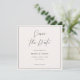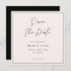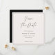Casamento quadrado moderno e clássico Salve a data com o Script de Tipografia manuscrito, fundo branco creme, um quadro elegante na frente e um backer preto. Personalize-o com as suas próprias informações de casamento. Um anúncio de casamento contemporâneo para casais modernos.