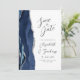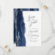 A borda esquerda deste elegante casamento moderno salve o cartão de data apresenta uma marinho azul de aquarela agata borda com falso brilho prateado. O texto personalizável combina a escrita manual de cinzas de carvão, as fontes em copperplate e itálico em um fundo branco. O verso apresenta um design azul marinho e agate prateado correspondentes.