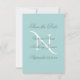 Bonito fundo azul de ovo robin com um monograma branco no centro. Um belo roteiro foi usado para dar a este "Salvar a Data" pura elegância. Simplesmente adorável e perfeito para você.