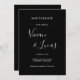 Casamento de Script Preto e Branco Salve o Cartão de Data com nomes de estilo de assinatura, este elegante cartão de identidade preto e branco pode ser personalizado com suas informações especiais de dia de casamento em letra chic.