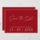 Casamento de Crimson Red Script Mínimo Salve o Cartão de Data. Imprime os seus convidados de casamento com o cartão vermelho do casamento, com um belo roteiro branco em um fundo vermelho de criminosos. Este cartão salva-vidas do casamento tem uma design vermelha impressionante, com vibrações modernas e mínimas, perfeito para o seu casamento simples, moderado e minimalista. O layout mínimo e moderno chama a atenção para a escrita branca, contrastando com o fundo vermelho-creme. Este cartão de salva-vidas do casamento vai dar o tom para um belo cenário de casamento rodeado por florais neutros ou cor-de-rosa, e decor de casamento correspondente. Uma adição perfeita a qualquer celebração romântica ou brilhante e alegre.