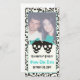 Casamento de tartaruga do Halloween Salve o cartão com fotos da Data, com noiva de casal do crânio preto e noiva sobre fundo de marfim e borda de padrão de crânio. O noivo veste um chapéu azul turquesa e a noiva um arco azul turquesa.