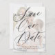 Casamento moderno romântico de chic salve a modelo com sua foto personalizada em uma camada transparente branca de moda com caligrafia colorida em preto. ++++++++++ Fácil de personalizar com seus detalhes e imagens em ambos os lados! +++++++++ Adequado para qualquer tema de casamento elegante de estação. ++++++++ Observe que a cor de fundo no verso é alterável. Você pode modificá-lo após selecionar a opção PERSONALIZAR. Se precisar de ajuda, você pode usar o Serviço de Design ao vivo gratuitamente.