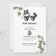 Um design de casamento com guião de Halloween gótico com videiras florais pretas, crânios e coração. Um design branco de Halloween que usa verde botânico preto e escuro junto com a tipografia de caligrafia de vintage. Um design Gothic na moda, ideal para os temas do casamento de Halloween. Um único botânico preto, crânios e casamento cardíaco salve o cartão design. Os convites de casamento e outros artigos de papelaria também estão disponíveis.