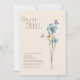 Simples Blue Wildflower Plot Twist Wedding Save the Date Card - Este convite de casamento rústico combina elegância minimalista com flores silvestres, toques florais azuis e um sutil motif de borboleta para um tema botânico único.