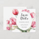 A tulipa é uma escolha refrescante que traz um clima de jardim de primavera para o seu casamento, e tudo começa com os seus save the dates modernos e minimalistas de tulipas para casamento. O design minimalista de tulipas para casamento apresenta um design moderno com tulipas em aquarela ao lado em verde e rosa, além dos detalhes do casamento em uma tipografia clássica manuscrita. O design é ideal para um casamento simples, criativo e único na primavera, verão, outono ou inverno! Encontre outros artigos de papelaria de casamento correspondentes ou coordenados no restante da coleção.