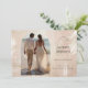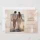 Um design elegante moderno apresenta vento+folha de palma de ouro soprada em ouro contra um fundo quente de cor pálida e cheia de sol. Personalize facilmente seus detalhes pessoais de escolha, incluindo sua foto favorita junto com seu monograma no verso. O casamento perfeito de Boho de verão para qualquer tema quente do mar.