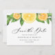 Reserve a Data! Anuncie sua data de casamento para a família e amigos deste verão, salve o cartão plano de data. Apresenta ilustrações aquarelas de limões e laranjas com uma escrita química. Personalize adicionando nomes, data, local e outros detalhes. Esses citros salvam os anúncios de data são perfeitos para casamentos de verão.